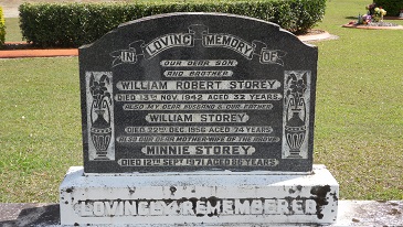 In loving memory of our dear son and brother WILLIAM ROBERT STOREY Died 13th Nov 1942 Aged 32 years. Also my dear husband and our father WILLIAM STOREY Died 22nd Dec 1956 Aged 74 years. Also our dear mother – wife of the above MINNIE STOREY Died 12th Sept 1971 aged 86 years. Lovingly remembered. |