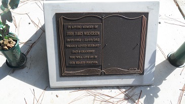 In loving memory of JOHN JAMES WOLVERSON 18/07/1952-22/05/2012 dearly loved Husband Dad and Grandpop you will live on in our hearts forever. |