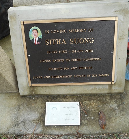 In loving Memory of SITHA SUONG 15-05-1983-04-03-2016 Loving father to three daughters beloved son and brother Loved and remembered always by his family Small marker In loving memory of Sitha Suong aged 32 years. |