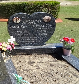 BISHOP D R & J L Donald Rice 11-9-1931 10-07-2016 JASMIN LILLIAN nee Clarke 2-5-1936 – 18-6-2017 Today and always much loved and missed by their children Diane, Karen &Ken, their grandchildren and Great Grandchildren. Family and Friends. |