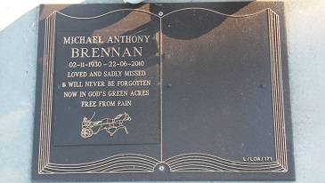 MICHAEL ANTHONY BRENNAN 2-11-1930-22-6-2010 Loved and sadly missed & will never be forgotten Now in God’s green acres free from pain (Horse Trotter) |