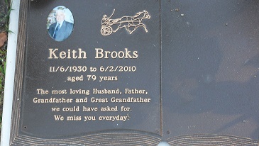 KEITH BROOKS 11-6-1930 to 6-2-2010 aged 79 years The most loving Husband, Father, Grandfather and Great Grandfather we could have asked for We miss you every day. (Photo & horse Trotter) |