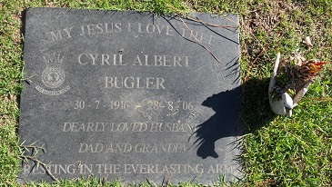 My Jesus i love thee Cyril Albert Bugler 30-7-1916 – 28-8-2006 Dearly loved husband dad and grandpa resting in the everlasting arms (Salvation Army Insignia) Marriage Cert No. 1944/b62403 |