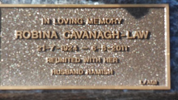 In loving Memory ROBINA CAVANAGH-LAW 21-7-1924-8-8-2011 reunited with her Husband Hamish |