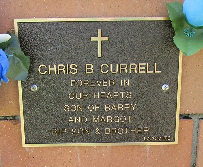 CHRIS B CURRELL  Forever in our hearts.  Son of Barry & Margot RIP Son & Brother.