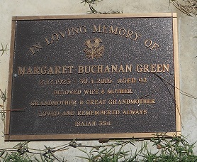 In Loving Memory of MARGARET BUCHANAN GREEN 2.12.1923-30.4.2016 aged 92 Beloved Wife & Mother Grandmother & Great Grandmother. Loved and remembered always Isaiah 35;1 |