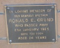 In loving memory of our dearest brother RONALD E GRUND who passed away 21.1.1985 Gone too soon Aged 24 years. Death Cert No. 1985/2183 Parents : David Maxwell and Rosalie Ethel nee Bianche |