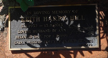 In loving memory of KEITH HARRY HILL 3.2.1932-15.8.2012 Loving husband of Ann  Beloved Dad Pop & Poppy Sadly missed for ever in our hearts.