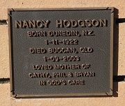 NANCY HODGSON Born Dunedin N.Z. 1.11.1922 Died Buccan Qld. 1.09.2003 Loved mother of Cathy Phil & Bryan In God’s Care.