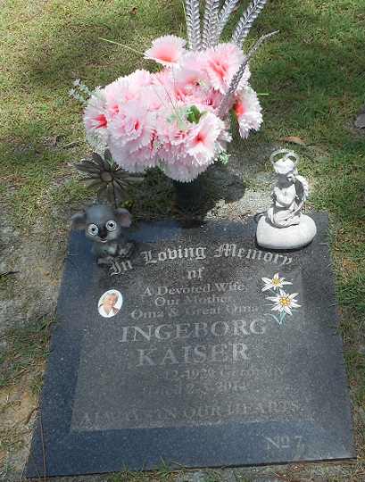 In loving Memory of a Devoted Wife, Our Mother, Oma & Great Oma INGEBORG KAISER .12.1929 Germany 2.3.2014 Always in our Hearts. |