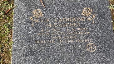 LIA CATHERINE McGAUGHEY 4.11.1974-6.11.1990 Much loved Daughter and sister. Forever in our hearts. Death Cert No. 1990/9859 Parents Robert John and Maria Ethel nee Davey |