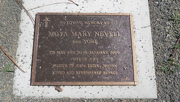 In loving memory of MOYA MARY NEVELL nee YORE 03 May 1915 to 18 January 2009 wife of John Mother of John Peter Joanna Loved and remembered always Parents : Michael Francis Yore and Cecilia Maud nee Horgan. |