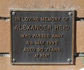 In loving memory of ALEXANDER REID who passed away 4th May 1995 Aged 90 years. At rest. Wife Ethel Frances Parents Thomas Reid & Ellen Hine |