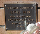 In loving memory of ETHEL REID who passed away 27th November 1995 aged 88 years At rest. Husband Alexander Reid. |