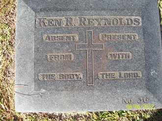 Absent from the body. Present with the Lord. KEN R REYNOLDS Death Cert No. 1984/4959 Parents : William James Reynolds and Emily Marie nee King |