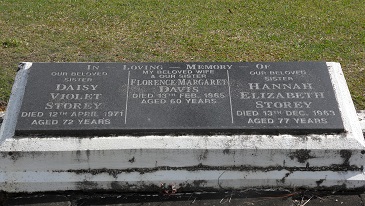 In loving memory of Our beloved sister DAISY VIOLET STOREY Died 12 April 1971 Aged 72 years. Parents John Storey & Margaret Liddle |