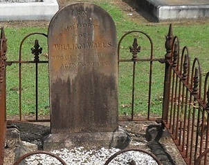 In memory of WILLIAM WALLS who died Sept 5 1895 aged 76 years.  Parents John Walls & Janet nee  Letch                        Wife : Margaret nee Inglis       Death Cert No. 1895/c3226.