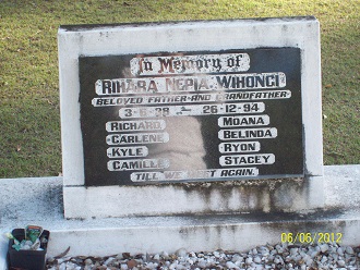 In memory of RIHARA NEPIA WIHONGI. Beloved father and grandfather; 3.6.38-26.12.94 Richard, Moana Carlene Belinda Kyle Ryon Camille Stacey Till we meet again. |