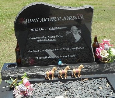 JOHN ARTHUR JORDAN. 26.6.1936-6.3.2015  A hard working, loving Father to his 8 children.  A beloved Grandfather, Pop and Great Grandfather.  “You will always be in our hearts”
