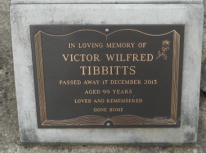 In loving Memory of VICTOR WILFRED TIBBITS passed away 17 December 2013 aged 99 years Loved and Remembered gone home.