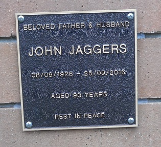 Beloved father & Husband JOHN JAGGERS 08/09/1926-25/09/2016 Aged 90 years.  Rest in Peace