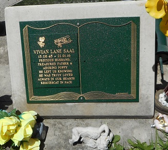 VIVIAN LANE SAAL  15.08.45 – 21.01.16 Precious Husband, Treasured Father & Adoring Poppy.  Heleft us knowing he was truly loved always in our hearts             Requiesc at in peace.