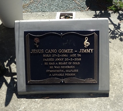 Jesus Cano Gomez “Jimmy” born 27-2-1961 aged 56 Passed away 20-2-2018 He had a heart of Gold. He was generous, sympathetic, selfless. A loveable person. |